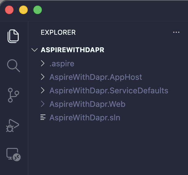 Having added the CommunityToolkit.Aspire.Hosting.Dapr package, we will now use it in the App Host’s Program.cs file. This code ensure that the Dapr sidecar, including loading components from the components folder and the configuration file, runs alongside the Web App, when start the app.