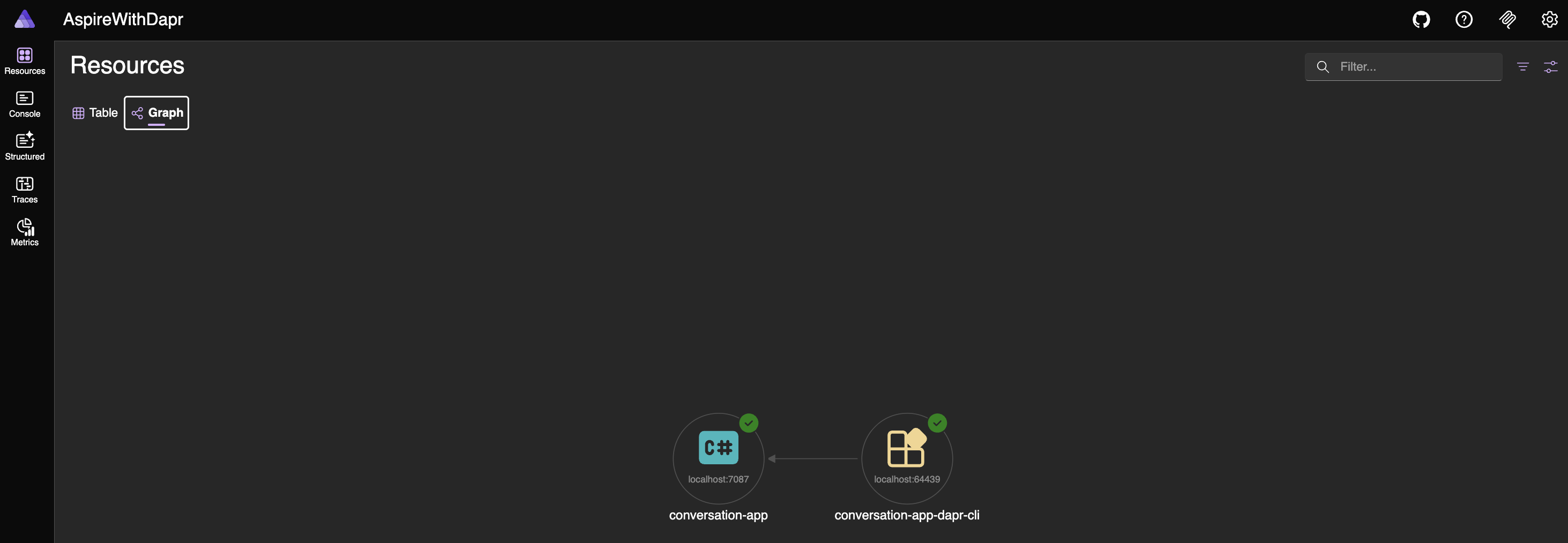 var webApp = builder.AddProject<Projects.AspireWithDapr_Web>("conversation-app")