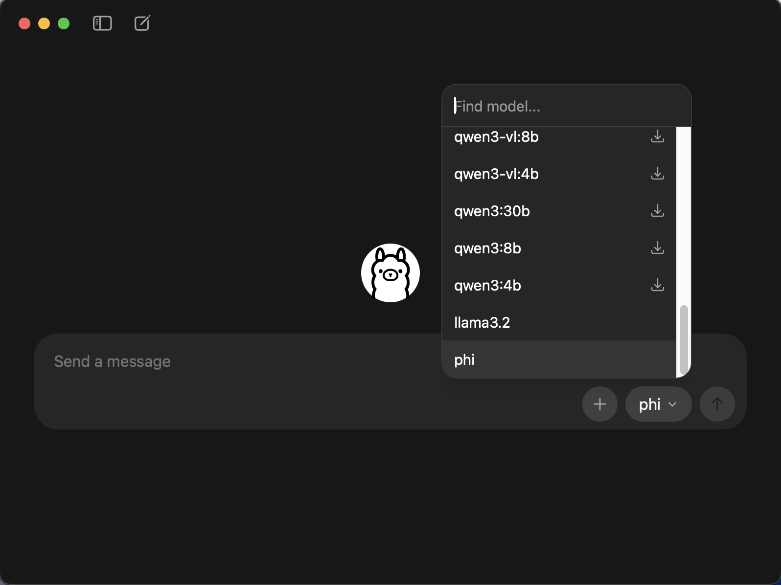 Once installed, you can launch the Ollama app and select the model you want to download. I used Llama 3.2 and Phi. Please review your hardware capabilities and the model requirements before downloading them.