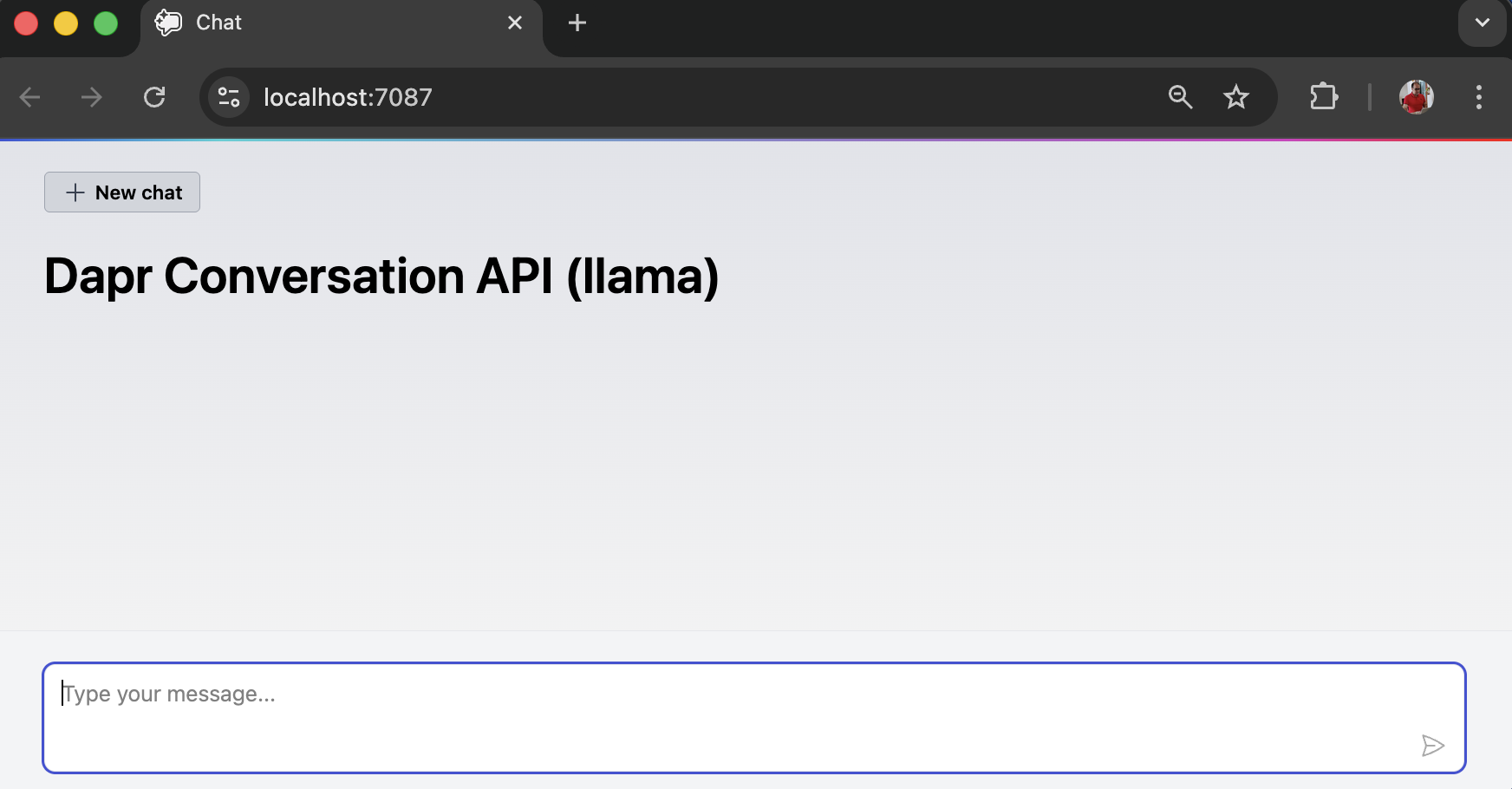 dotnet add package Dapr.AIThe Program.cs file in the Web App has been updated to enable integration with the Dapr Conversation API.