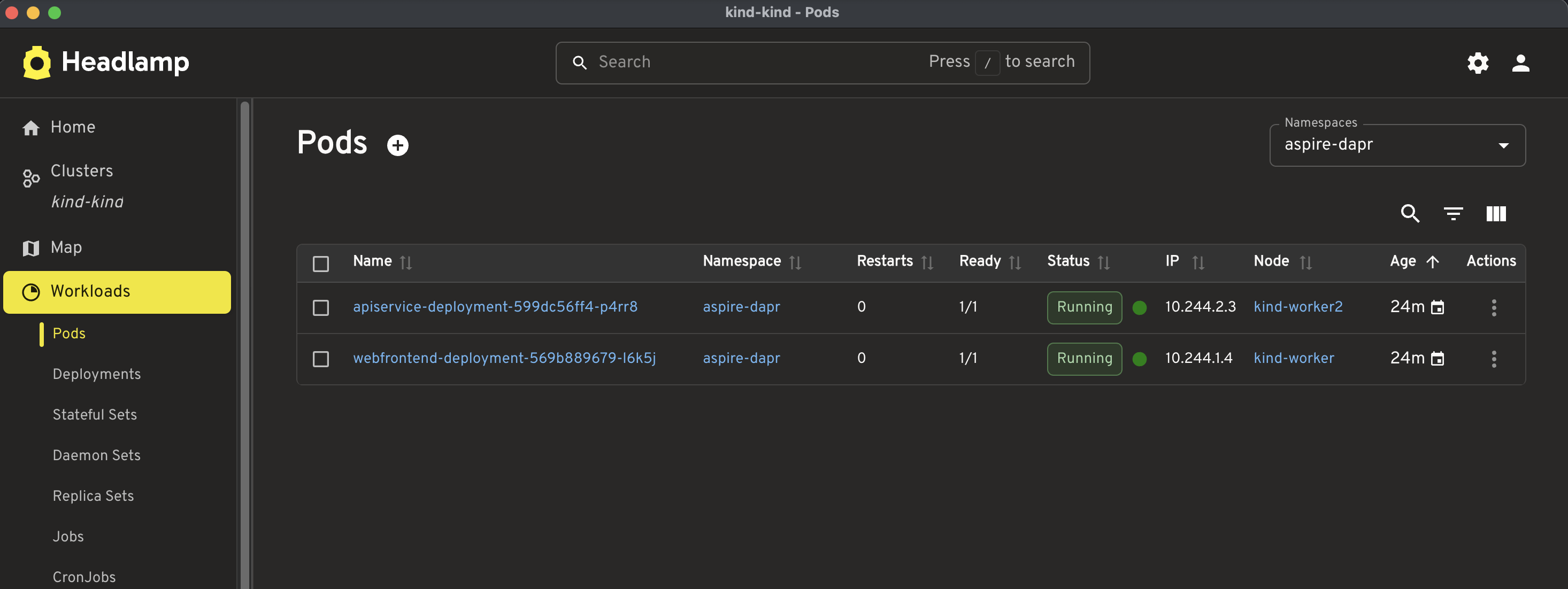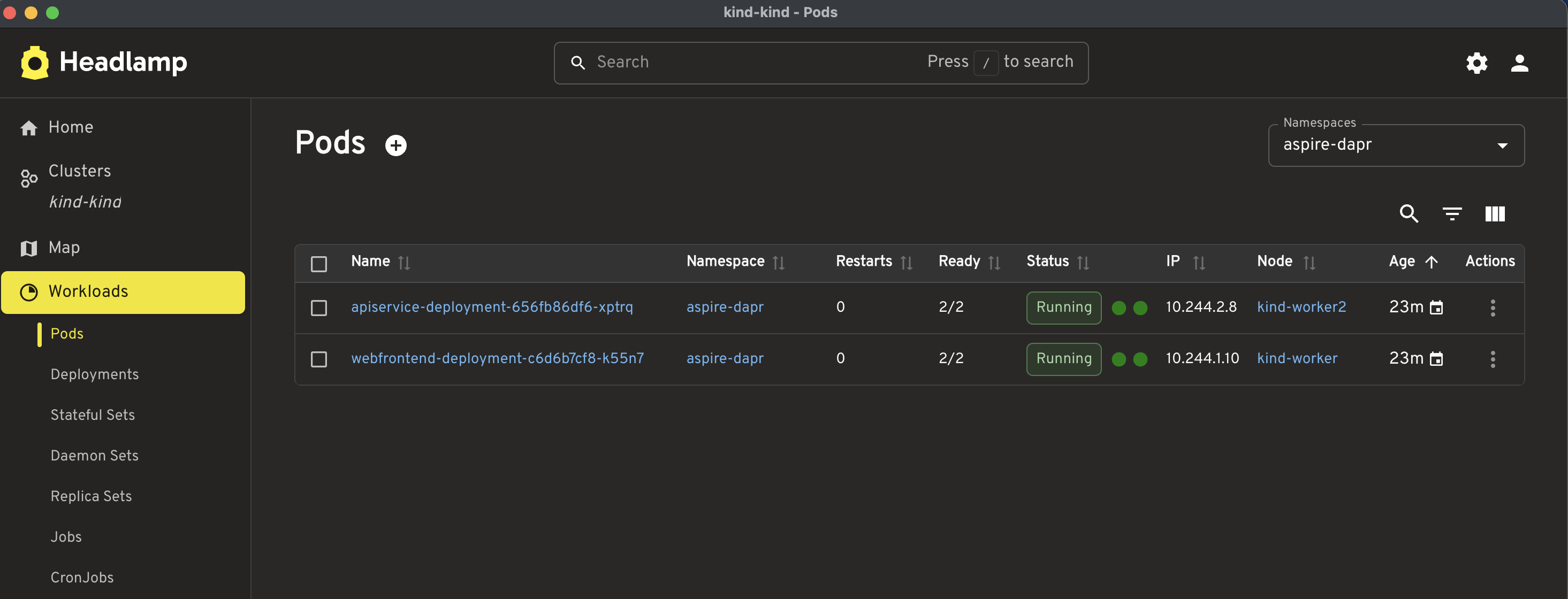 Important: Make sure you run the local bridge-related command only after the apps have been published and deployed to KinD and the pods are ready.