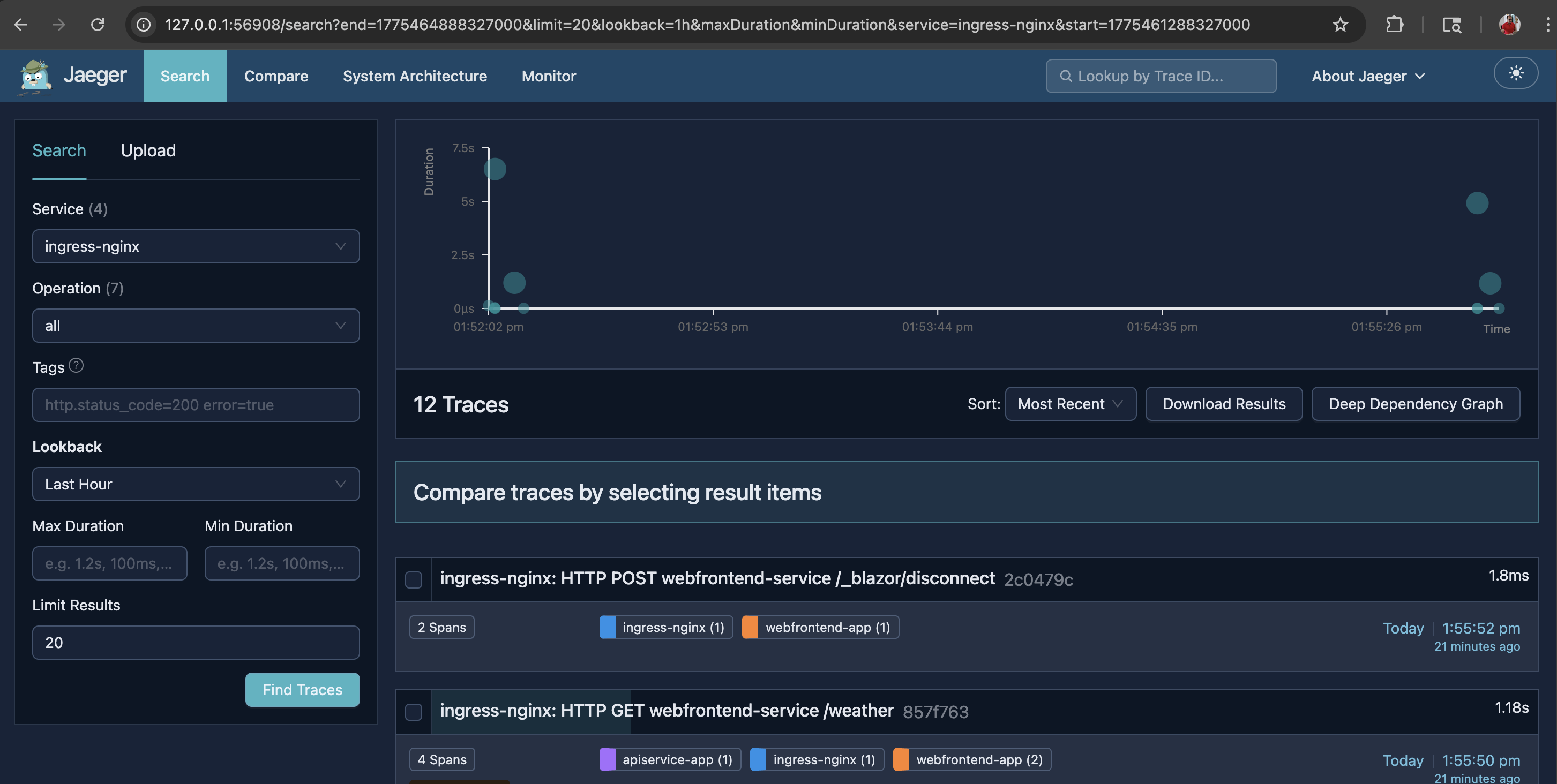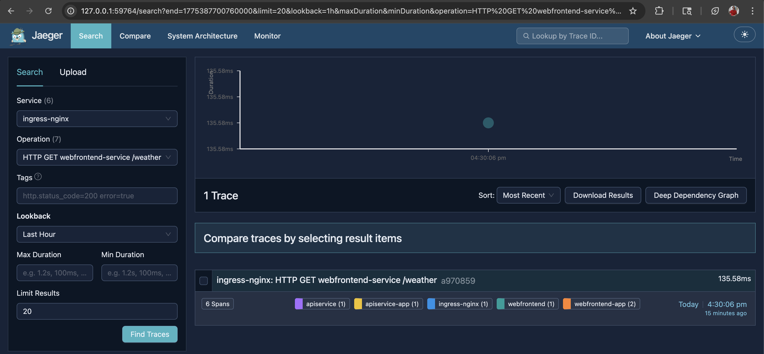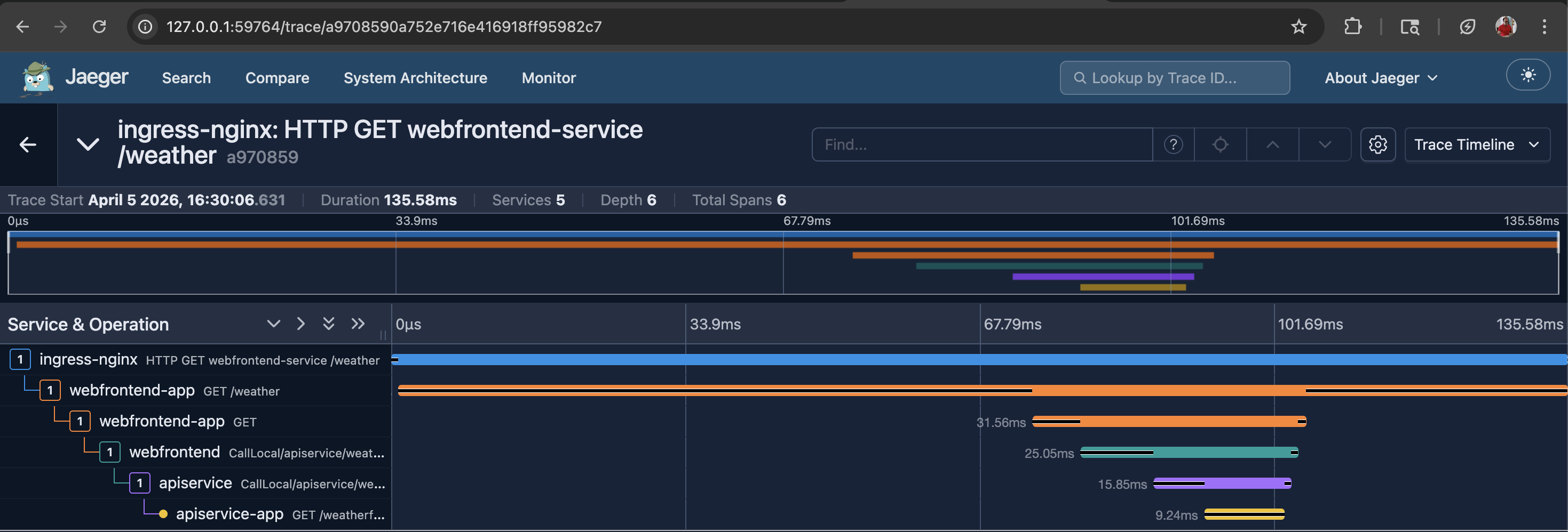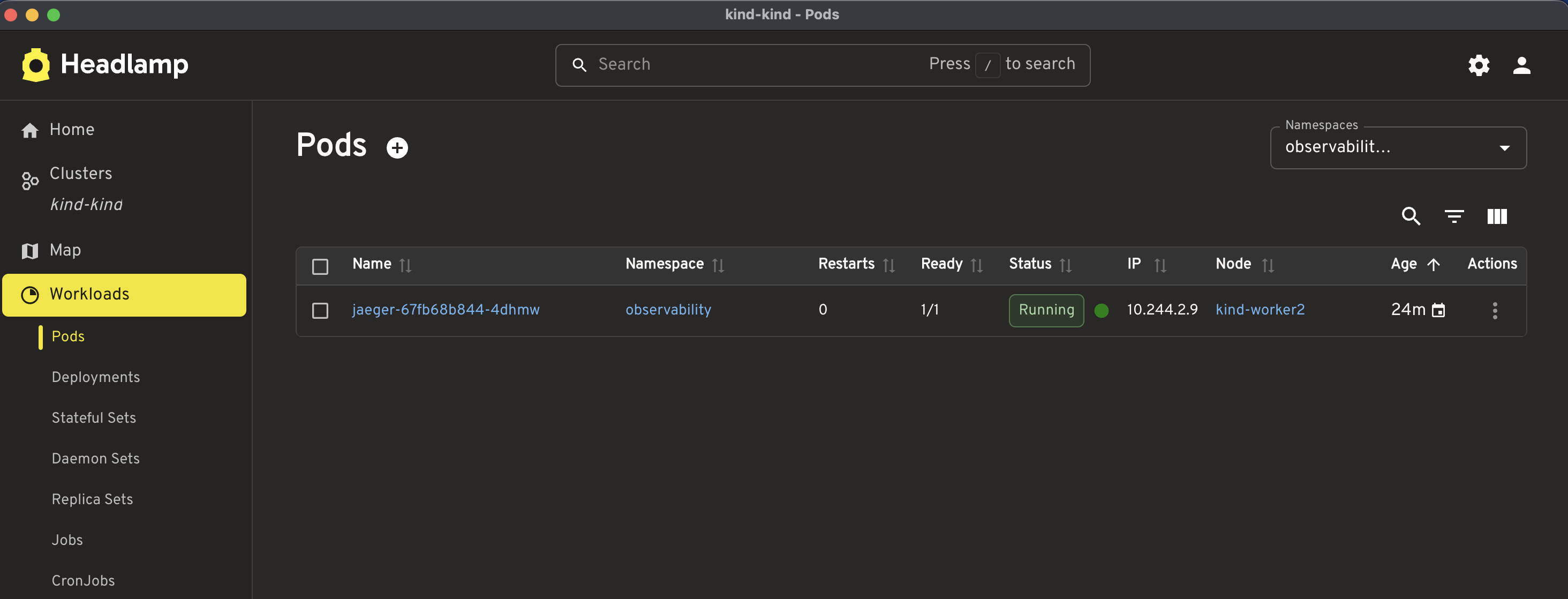 kubectl -n observability rollout status deployment/jaeger --timeout=180sNote: Although it is possible to create a single script file to set up the entire environment end to end and another to tear down the cluster, I intentionally kept the steps separate so that each command is easier to understand and follow.